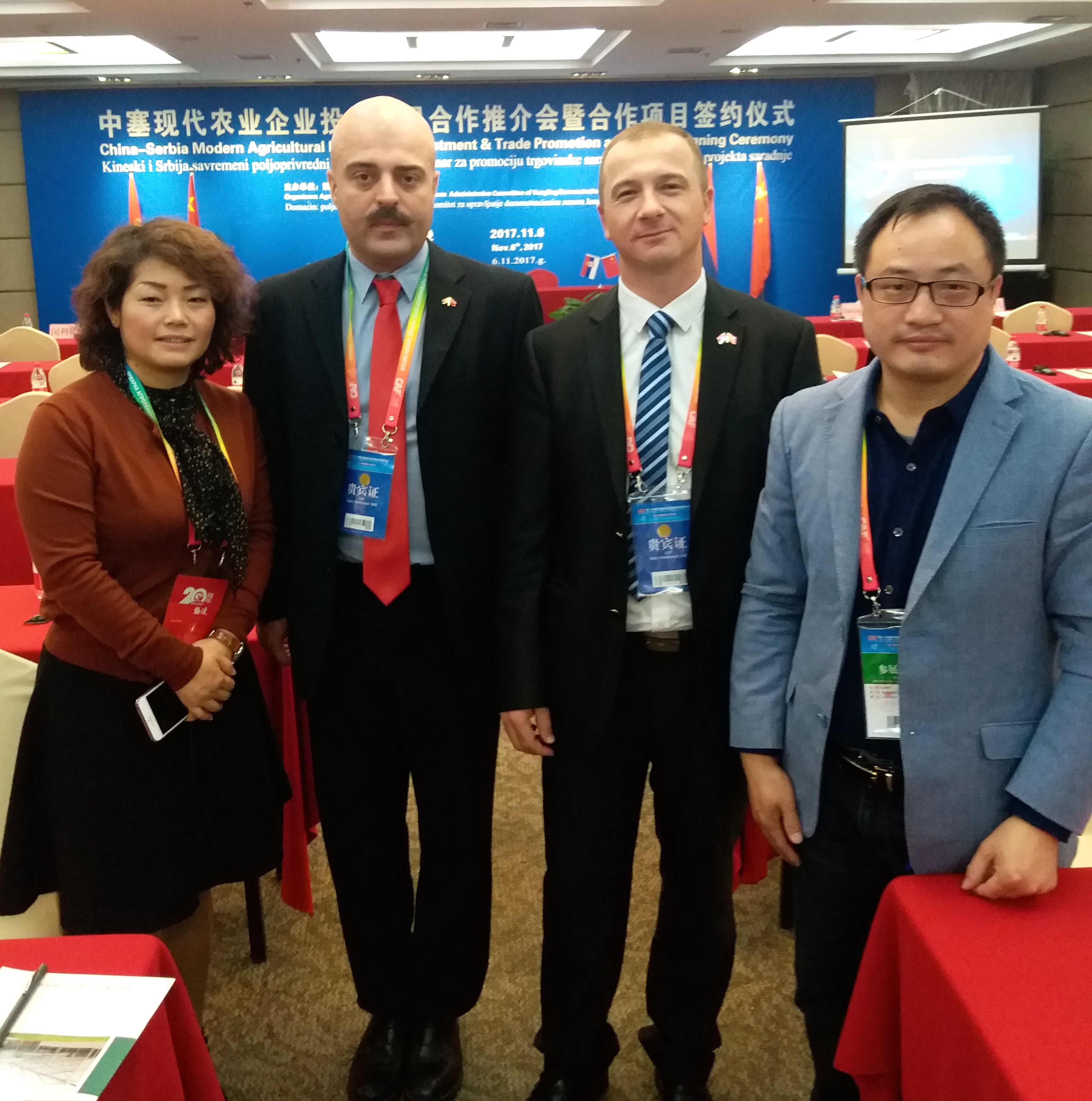 杜总代表公司与主宾国塞尔维亚共和国丘普利亚市市长就塞产葡萄酒、水果、牛奶、牛肉等产品进口事宜深入交流和沟通,达成了多项合作意向。