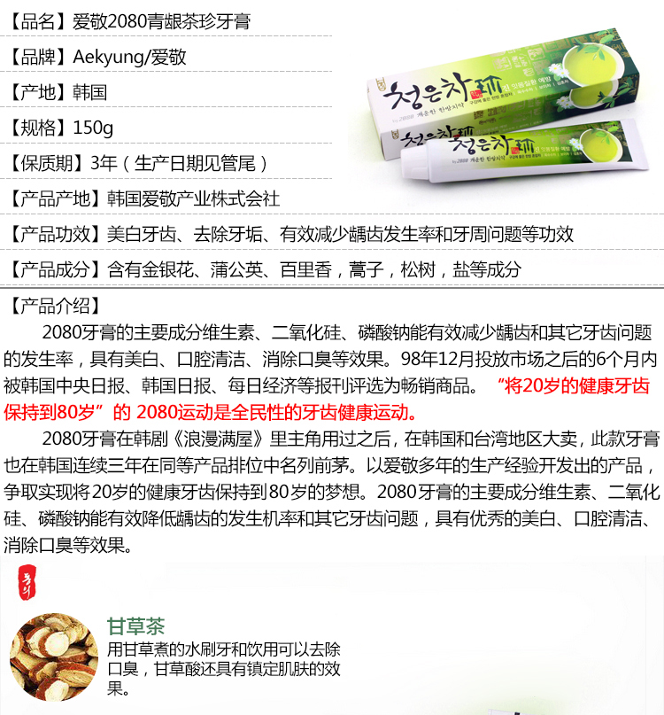 2080青龈茶牙膏
